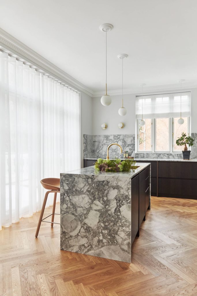 In an older, renovated villa in Frederiksberg, functionality and aesthetics are combined in the choice of curtains.